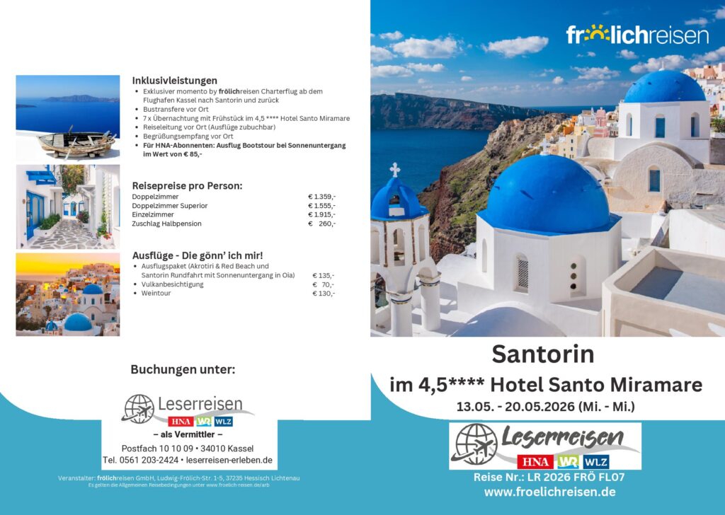 - Exklusiver momento by frölichreisen Charterflug ab dem Flughafen Kassel nach Santorin und zurück